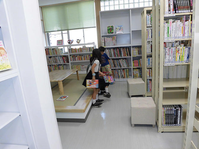 リニューアルした図書館。町民の要望により奥には小上がりの畳スペースも作られた