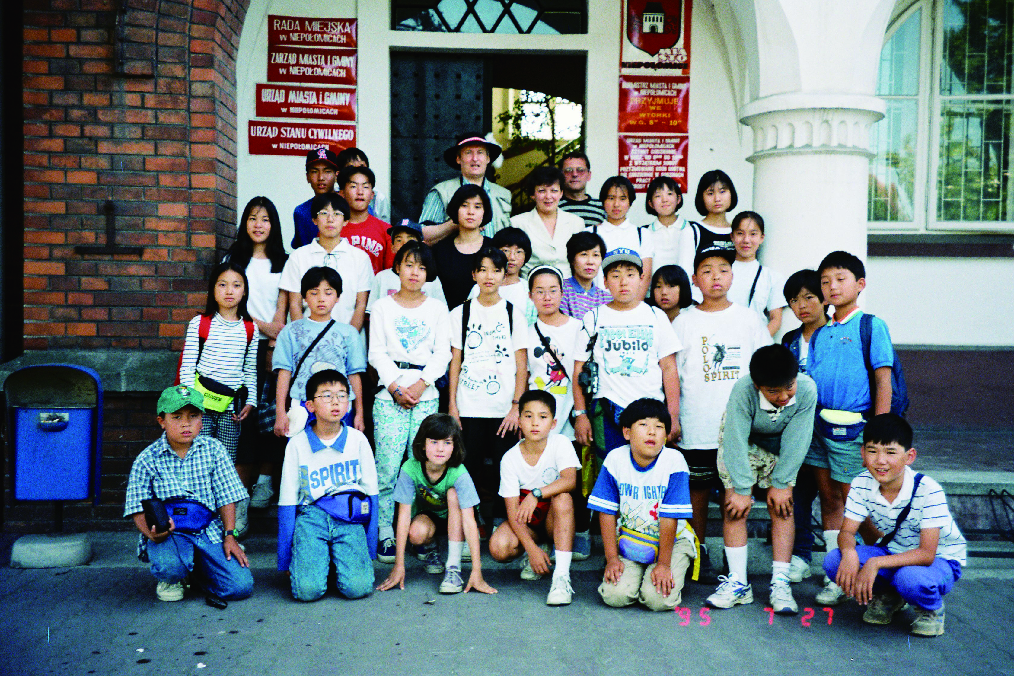 1995年、ポーランドを訪れた小学校4年生から中学生までの30人。前から2列目、右から4人目が岡﨑氏(写真提供:岡﨑拓さん)