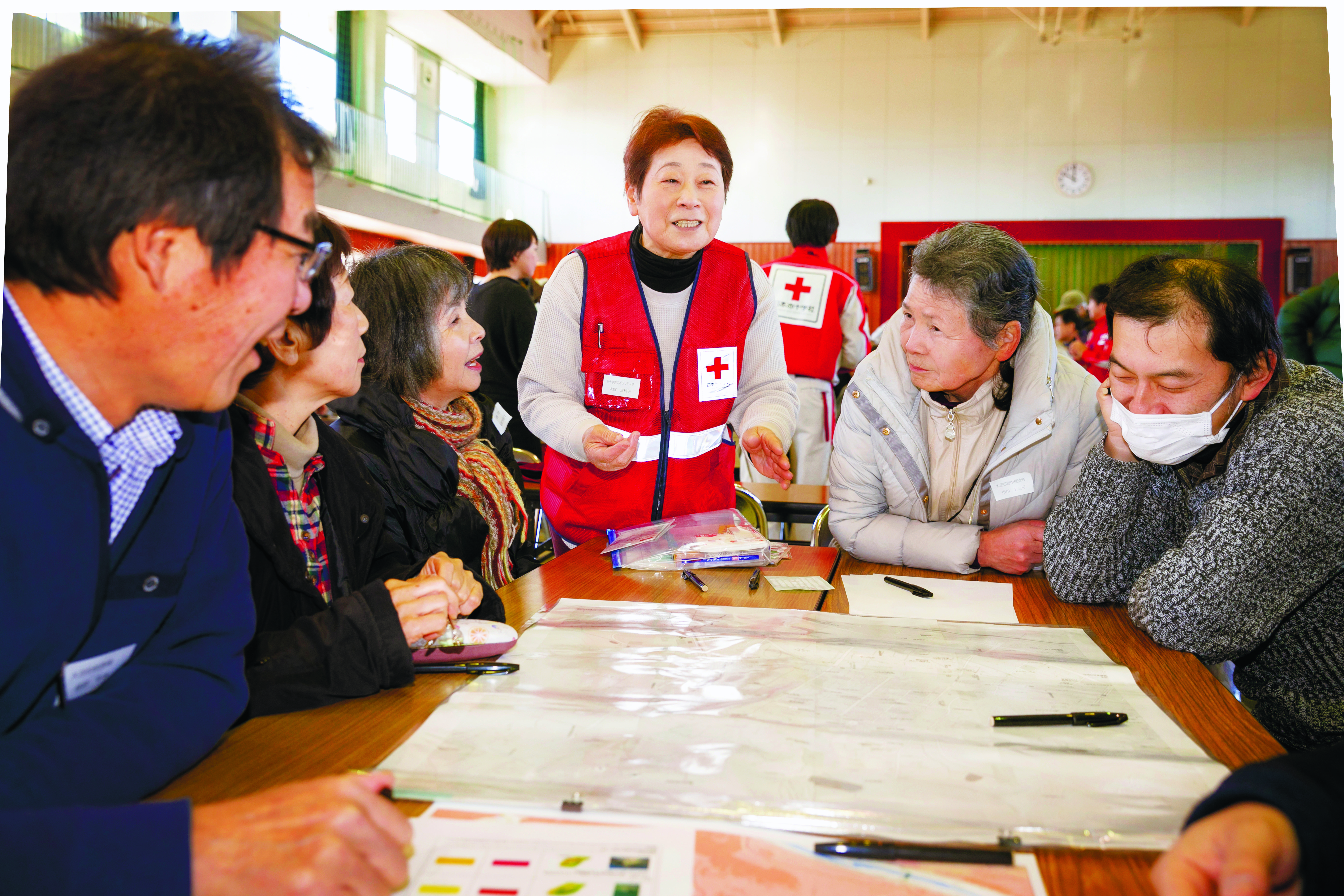 【防災・減災】助かる力を高めるために 防災減災において、町内会や自治会などの地域コミュニティで「自助」と「共助」の力を高めることは重要です。日赤が全国で取り組む「赤十字防災セミナー」では、災害発生時に予想される被害や避難生活などに対応する4つのカリキュラムを用意。命を守る方法を地域に密着した形で学びます。この中から今回は、令和元年台風第19号災害の被災地、栃木県足利市毛野地区で行われた災害図上訓練(DIG)の様子をリポートします。