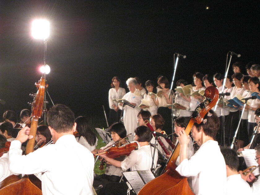 ジュノー博士と赤十字に心の底から感謝の念が湧いてきた私は、毎年8月6日に行われる灯籠流しの会場で、オーケストラの演奏にコーラスを付け、演奏と歌を聞く方に寄付を呼び掛ける活動を始めました。オーケストラの演奏費など一切取らない無料の音楽会です。コーラスには私も参加しています。集まった募金は日赤の広島県支部へも寄付しています。さらに、毎年秋に地元の小学校へ献血バスが来てくださるので、仲間も誘って、献血の呼び掛けも行っています。