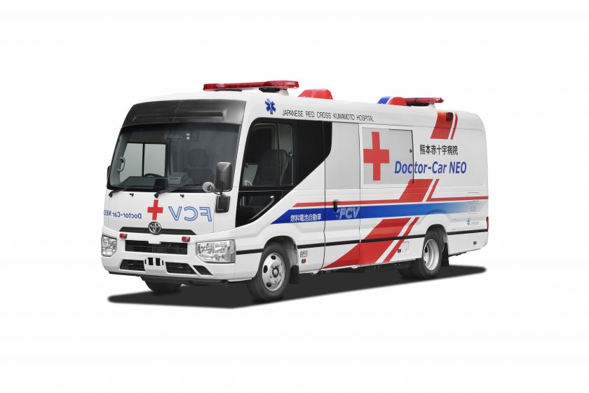 TOYOTAと共同開発した水素で発電する燃料電池を使った救急車の実証実験をまもなく開始。平常時は、CO2排出量が削減され温暖化防止に貢献する医療車として活用され、災害時には医療現場や被災地に電源を供給しながら医療活動をサポート。新しい燃料電池医療車の運用モデルとして注目を集めている。