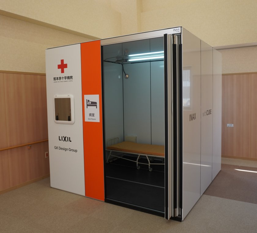 LIXIL、GK設計と共同でプライベート空間を確保する可搬式ブースの共同実証を開始。普段は熊本赤十字病院内でもミーティングやWeb会議ブースとして活用しながら、昨年の熊本県で発生した豪雨災害では、発熱した小児患者の隔離や、新生児の授乳スペースなどに活用された。