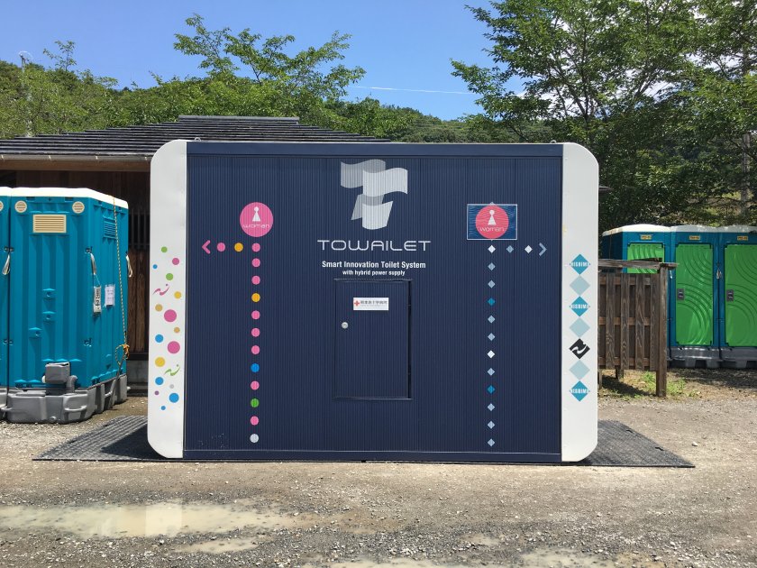 トワイレは、バクテリアにより排せつ物を浄化処理し、処理した水を洗浄水として再利用することで、上下水道が未整備な場所や、災害で寸断された場所でも置くだけで使える完全自己処理型水洗トイレ。すでに熊本や長崎などの公園内での利用が進んでいる。これまで、九州北部豪雨、西日本豪雨、熊本豪雨災害の被災地支援で活用され、普通の水洗トイレと同じレベルの高品質な使用感に高い評価が寄せられている。