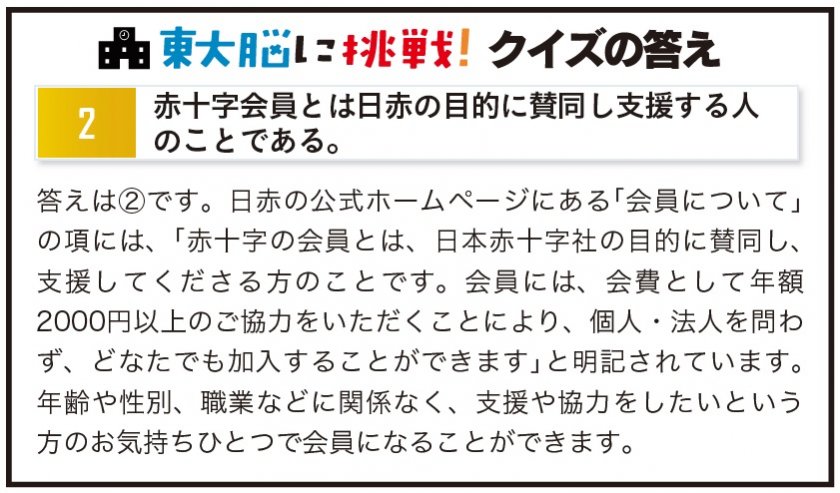 東大脳に挑戦! 知ってるつもりでも、意外と知らない赤十字のこと。 東大クイズ研が手掛ける問題にあなたは正解できる!?