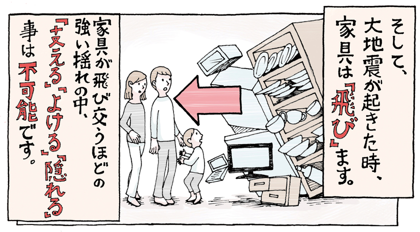 大地震が発生した場合、家具や家電などは、大暴れするモンスターに変身してしまうかも!