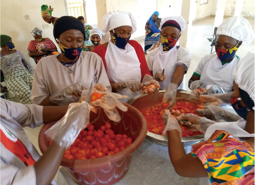 農作物の加工法を学ぶガンビアの女性たち/写真:©︎国際赤十字・赤新月社連盟