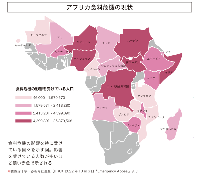 干ばつなどの気候変動や感染症流行の影響で悪化する社会経済に加え、国際社会の混乱によって食料供給が不安定になり、アフリカに追い打ちをかけました。激しい戦闘行為や、多くの避難民発生などの緊急事態は連日報道されても、アフリカで多くの人々が飢えに苦しみ、深刻な事態に陥っているという報道の数は多くありません。そのため、この危機に関心を向ける人の数も少ないのです。