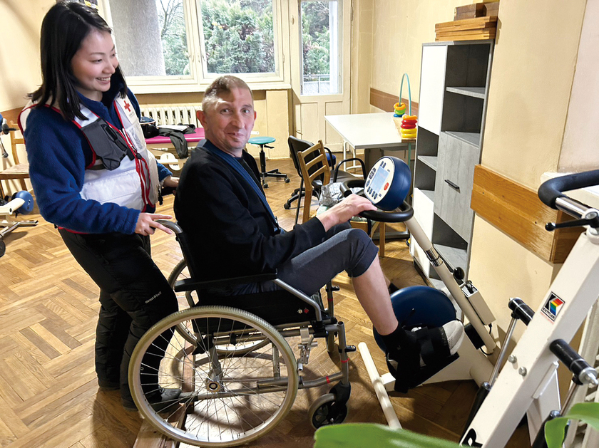 日赤は現地ウクライナ赤十字社と協議し、特に日赤の強みである保健医療分野を生かした資機材支援や技術支援を展開。仮設診療所やリハビリテーションセンター支援など避難民に医療を届ける活動を続けています。昨年度、計3カ月にわたりウクライナに派遣された矢田さんは、ウクライナ赤十字社の医師や看護師と共に活動した山間部の巡回診療を振り返り「診療で出会った人々からは、質の高い医療の提供に感謝の言葉が寄せられました。これからも中立・公平な立場で、ウクライナ人道危機の影響を受けている人たちへの支援を続けていきたいです」と決意を新たにしました。