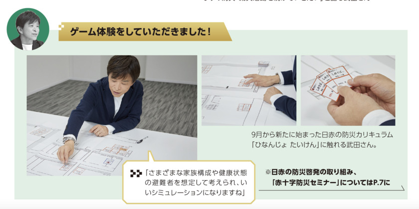 「フリーとなって、今だからできる形で被災地に寄り添い、私なりの防災・減災活動を続けていきたい」と語る武田さんに、赤十字防災セミナーの新カリキュラム「ひなんじょ たいけん」を体験していただきました!
