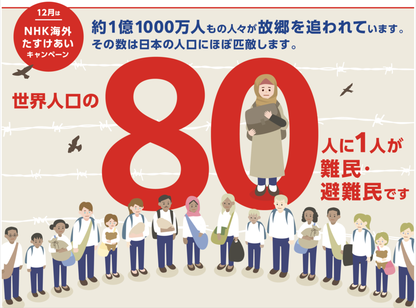 今、危機に瀕(ひん)している 1億人の命をつなぐために。 紛争などから避難している人々は、世界中で1億人以上