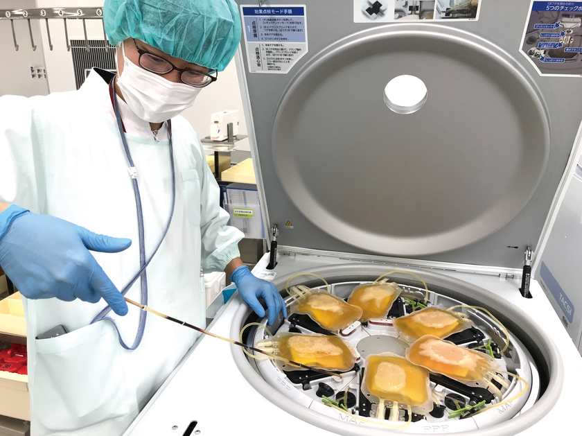 私は製剤部で、献血していただいた血液を使って血液製剤を製造する業務に携わっています。例えば、白血球に起因する副作用の減少を目的とした白血球除去や、リンパ球が輸血を受けた患者の体内で攻撃することを防ぐための放射線照射によるリンパ球不活化などを行っています。輸血は、献血された血液をそのまま使用していると思っている方もいるかもしれません。しかし、輸血用の血液製剤はその名の通り「製剤=薬」であり、命を救うものであると同時に、他の薬と同じく安全・安心であることが大前提です。一方で、1人分の血液から製造できる血液製剤は限られているため、貴重な血液を、確実に医療現場に届けたいという思いで業務に取り組んでいます。