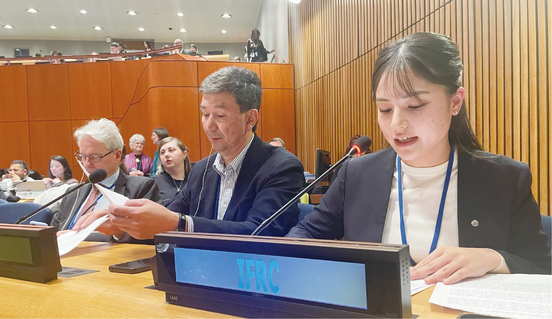 日赤広島県支部の職員が、3月3日~7日にアメリカ・ニューヨークの国連本部で開催された、核兵器禁止条約(TPNW)第3回締約国会議に参加しました。職員は会議の場で、「あの日」の広島の凄惨な真実を伝え、議長国であるカザフスタンの赤新月社の職員と共に「国際赤十字・赤新月運動全体として核兵器のない未来に向けて引き続き尽力する」という声明文を読み上げました。