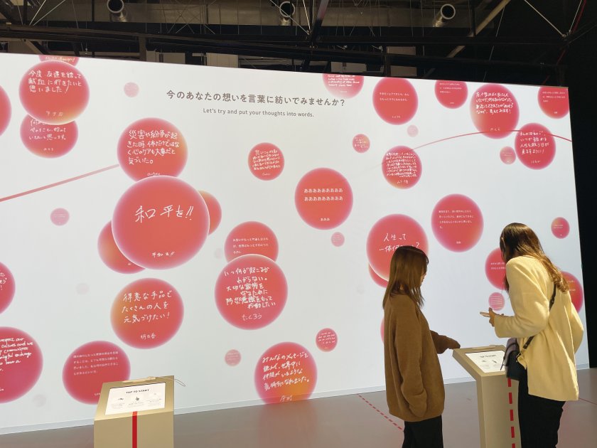 LIVE万博パビリオンVol.1 「メッセージウォール」 このコーナーでは「国際赤十字・赤新月運動館(通称・赤十字パビリオン)」など万博会場のリアルな様子を現地からリポートしていきます。