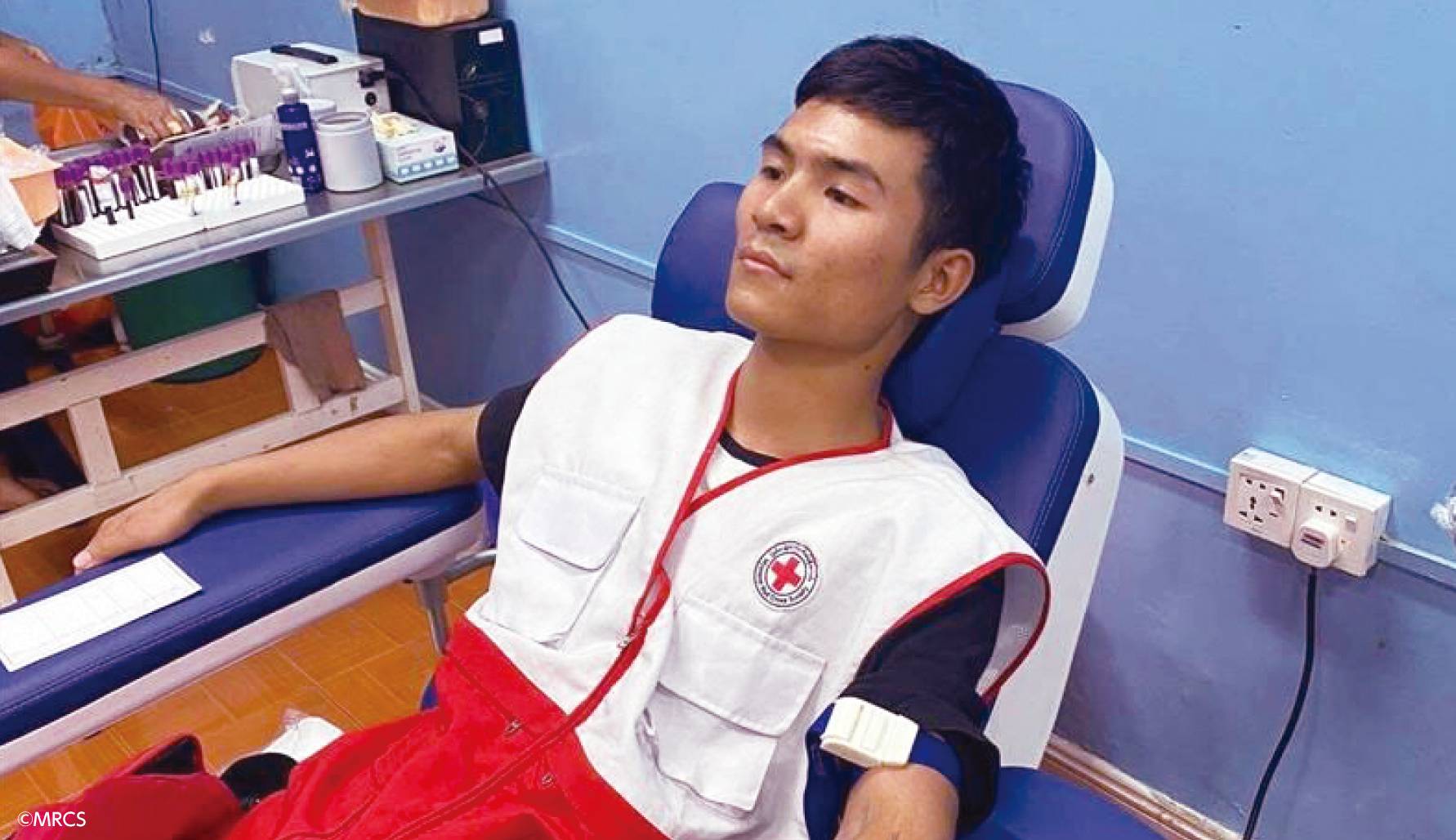 ボランティアたちは、地震で負傷した人々の緊急輸血を支援するために献血も行った