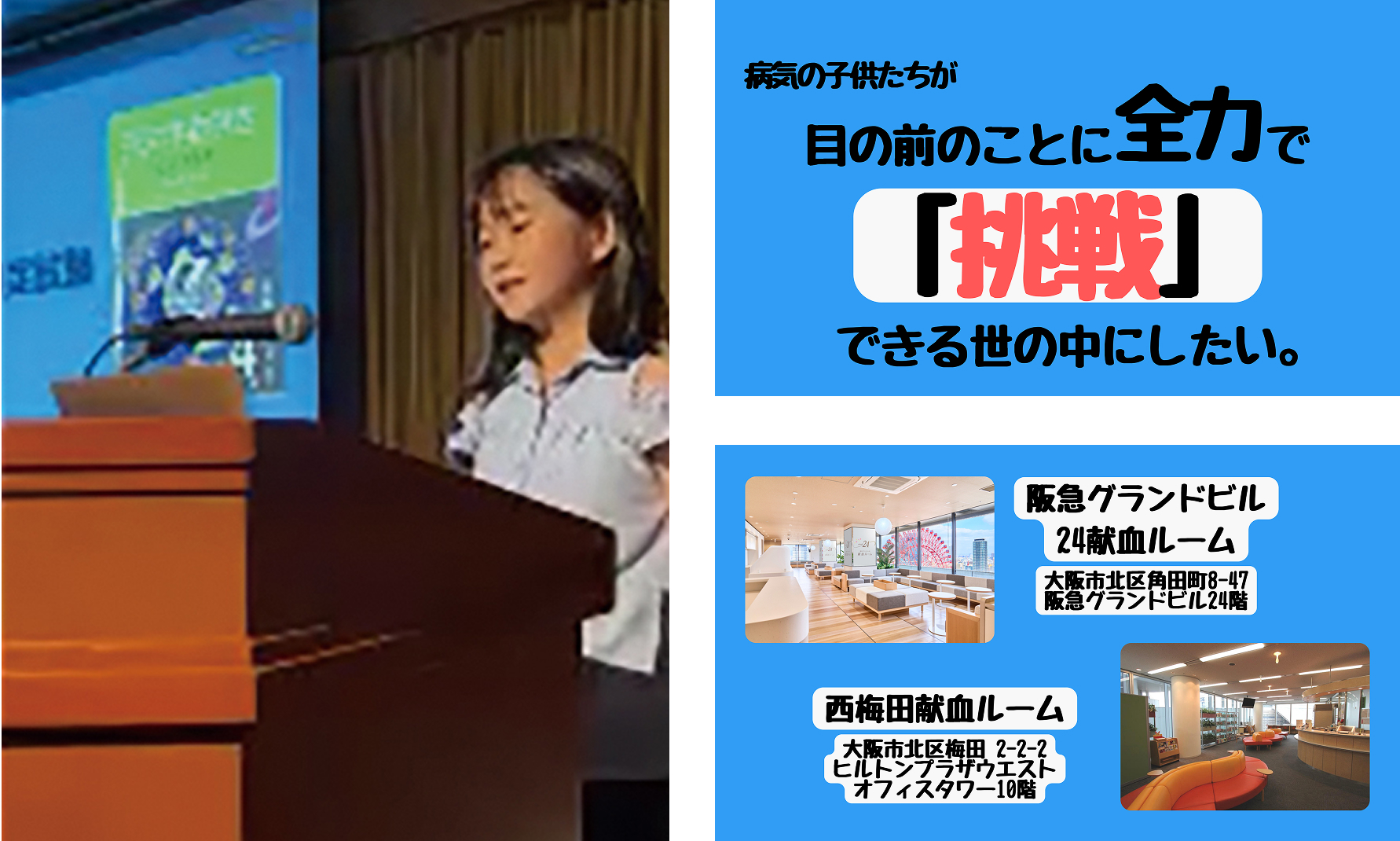 6歳で川崎病を発症し、血液製剤の投与などの治療を経て元気を取り戻した、れいなさん。その後彼女は、企業でのプレゼンテーションや学校の自由研究を通して献血の大切さを訴え、川崎病の支援活動をする読売巨人軍の大勢投手とも対談しました。
