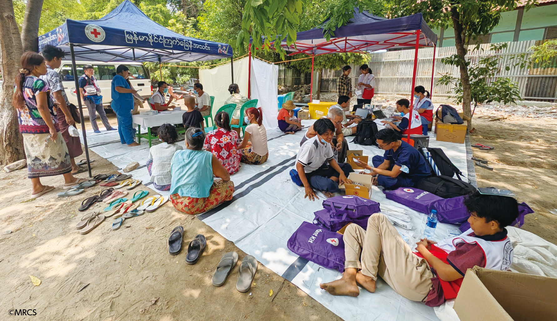従来より人道支援ニーズが高いミャンマーにおいて、ミャンマー赤は地震発生前から巡回診療チームを各地に編成し、活動してきました。また、多くのボランティアも、この診療チームのサポートに参加しています。