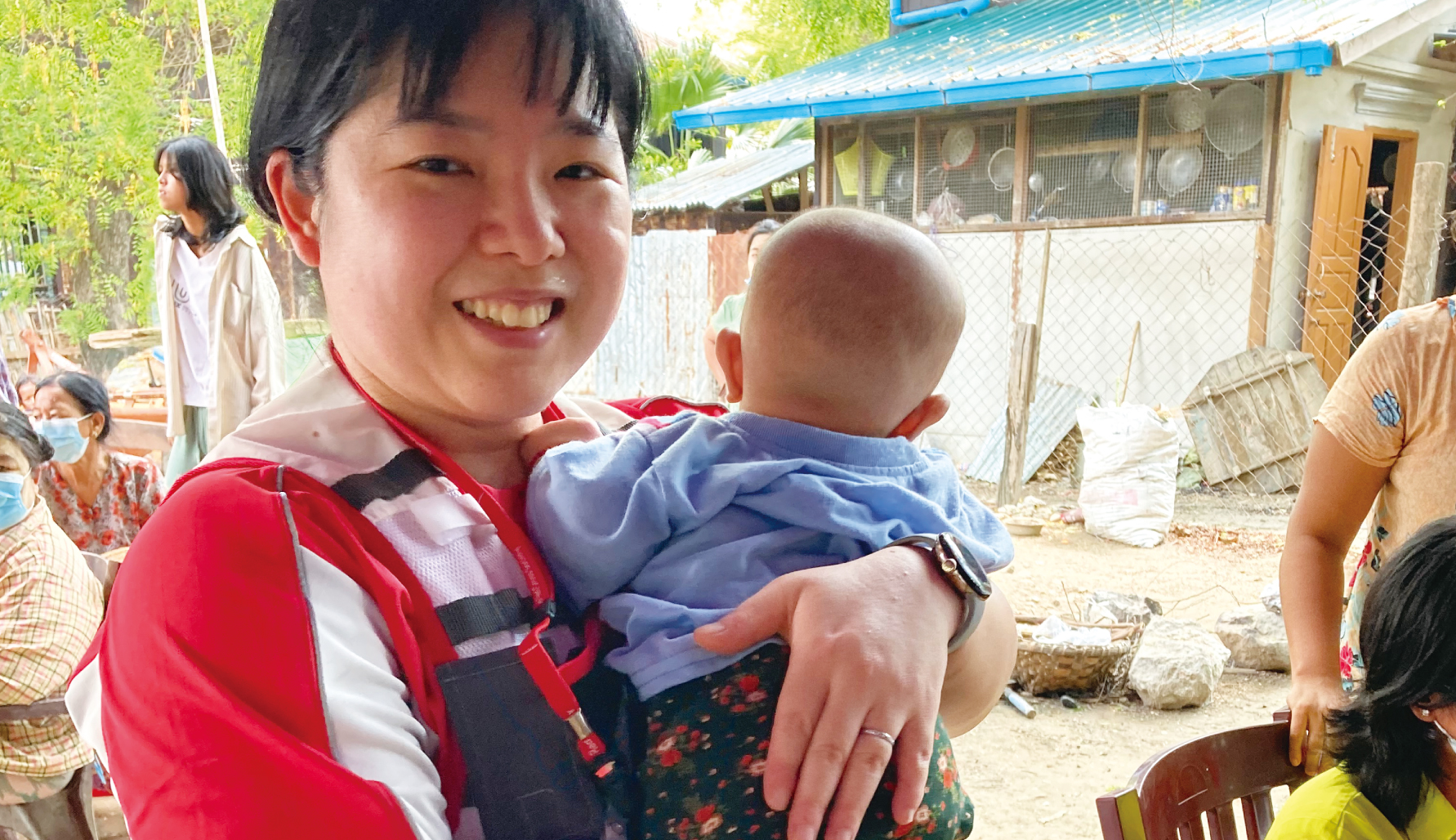 被災地で避難民の赤ちゃんをあやす藤原看護師
