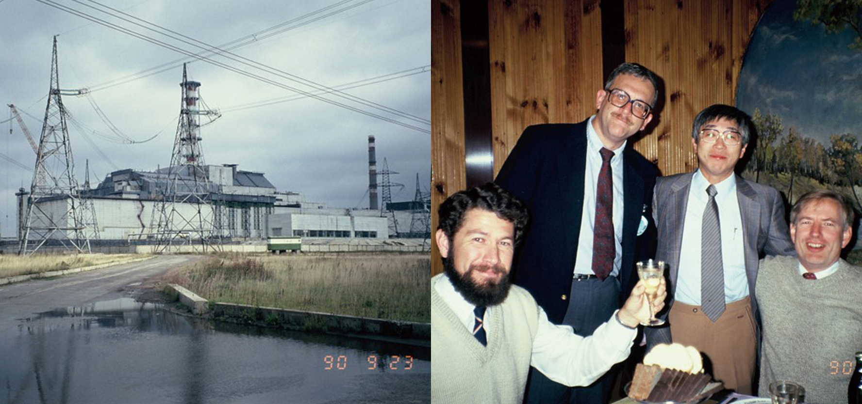 (右)1990年、チェルノブイリ原発事故後の現地調査のIAEAメンバーと土肥医師(右から2人目)