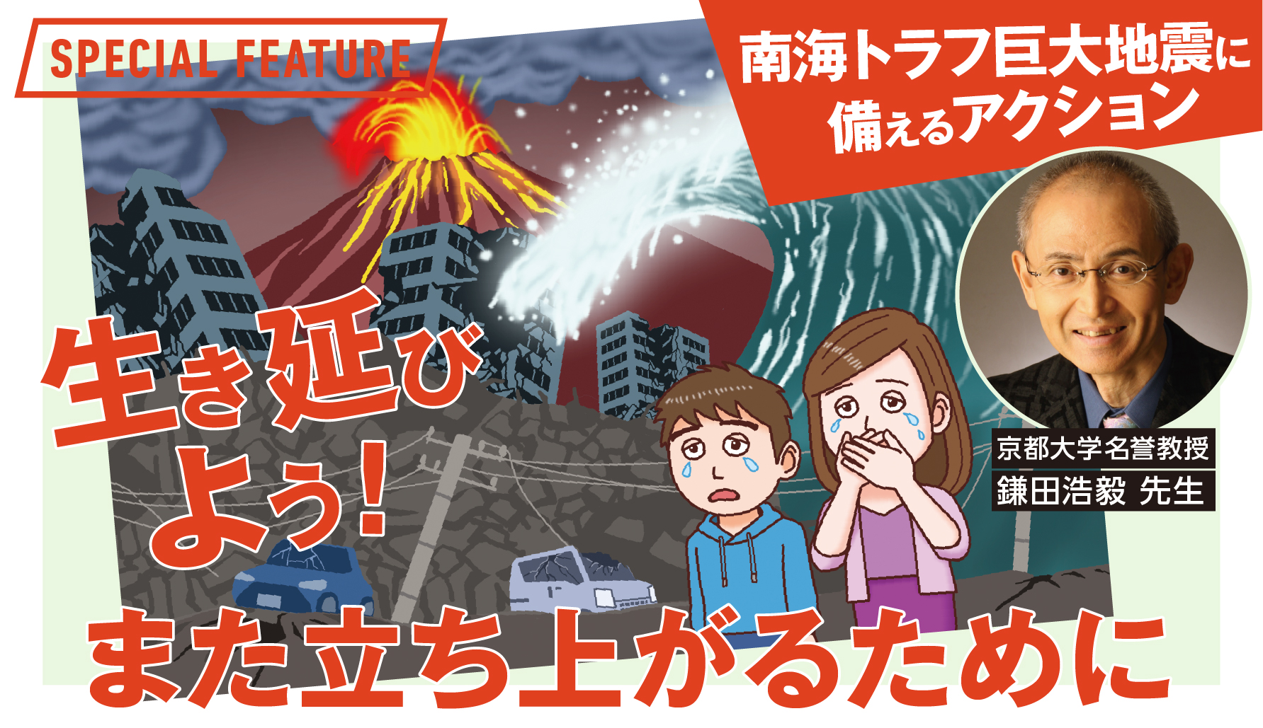 静岡県・駿河湾沖から宮崎県・日向灘沖にかけての海底にある、南海トラフ。ここを震源域とする大規模地震は過去にも甚大な被害をもたらし、近い将来、その発生の周期が巡ってくる可能性が国からも発表されています。今回は、その被害予測から備えるべきポイントまで、地球科学の研究者である、京都大学名誉教授の鎌田浩毅先生に伺いました。