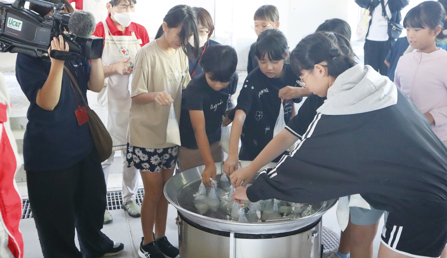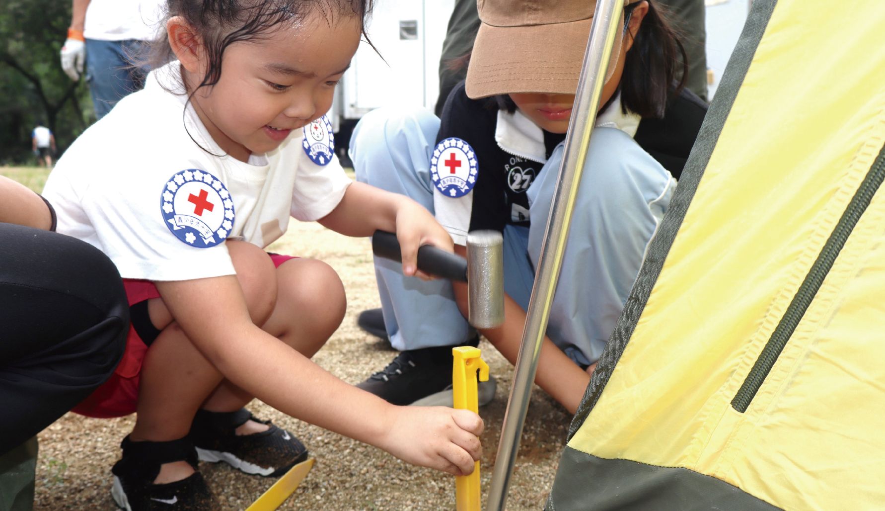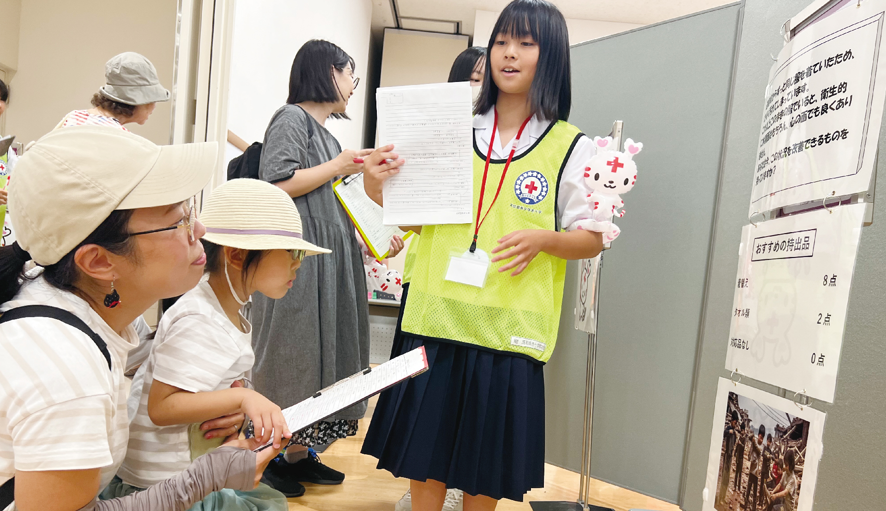 日赤京都府支部では、8月21日に青少年赤十字(JRC)夏祭りを開催しました。この企画は、青年赤十字奉仕団のメンバーで、府内の児童福祉施設で働く宮本佳蓮さんが、「施設の子どもたちに地域に出て色々な人と関わってほしい」という思いで発案。JRCメンバーがそれに応え、子どもたちとの関わり方や安全配慮についての勉強会を経て、企画、準備を行いました。当日は施設の子どもたちが招かれ、スタンプラリーやペットボトルを活用したボーリングなど、手作りの縁日コーナーで子どもたちをもてなしました。終了後宮本さんは、「これからも小さなニーズにも目を向けて、地域に還元する活動をしていきたい」と語りました。