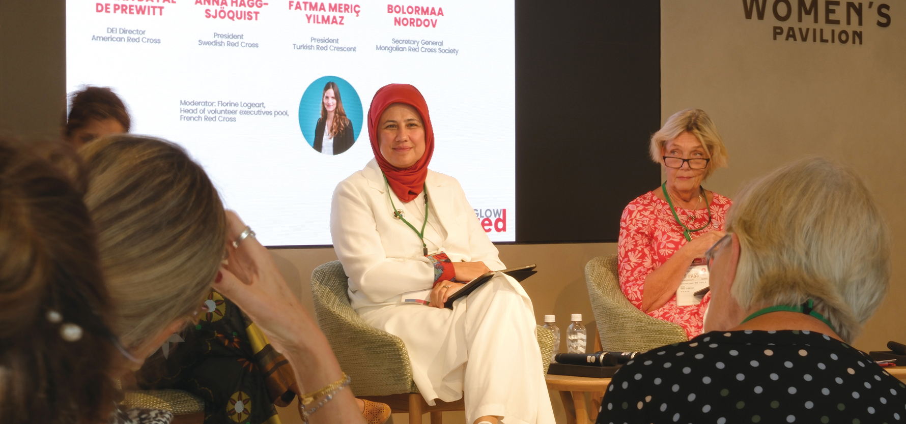 「GLOW Red(グローレッド)」=The Global Network for Women leaders in the Red Cross Red Crescent Movement。国際赤十字・赤新月運動における女性リーダーの活躍と育成を目標に掲げた世界的ネットワークで、2018年に発足。女性のエンパワーメントの推進、幹部職における男女の機会平等の強化など、多様性の重要性を積極的に提言する。これまで世界120以上の赤十字社、赤新月社から約700人が参加。今年の大阪・関西万博では、「災害や紛争における女性リーダー」などをテーマにパネルディスカッションを行った。