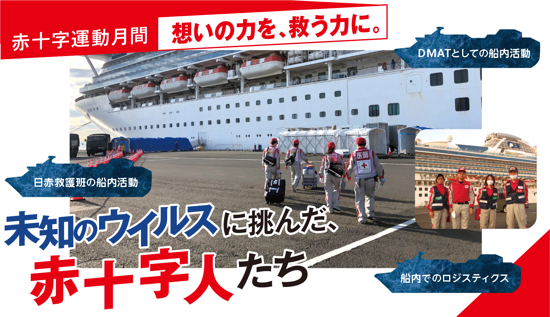 2020年初頭、横浜港に停泊していた大型クルーズ船で発生した新型コロナウイルスの集団感染。未知の感染症として社会に恐怖と分断が広まっていた「あのとき」、赤十字の医療救護班が船内で隔離された乗客・乗員のケアと診療にあたっていました。