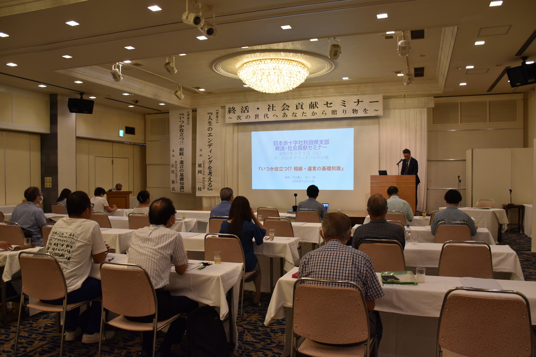 日赤秋田県支部では、終活や相続・遺言、遺贈寄付についての知識等を紹介するためセミナーを実施しています。