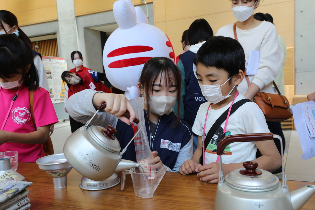 日本赤十字社秋田県支部では、子どもたちが赤十字職員となり、皆で働き、学び、遊ぶことを通じて親子一緒に赤十字の理念や活動を知っていただく体験型イベント「赤十字キッズタウン」を5月26日(日)に日本赤十字秋田看護大学・短期大学で開催しました。