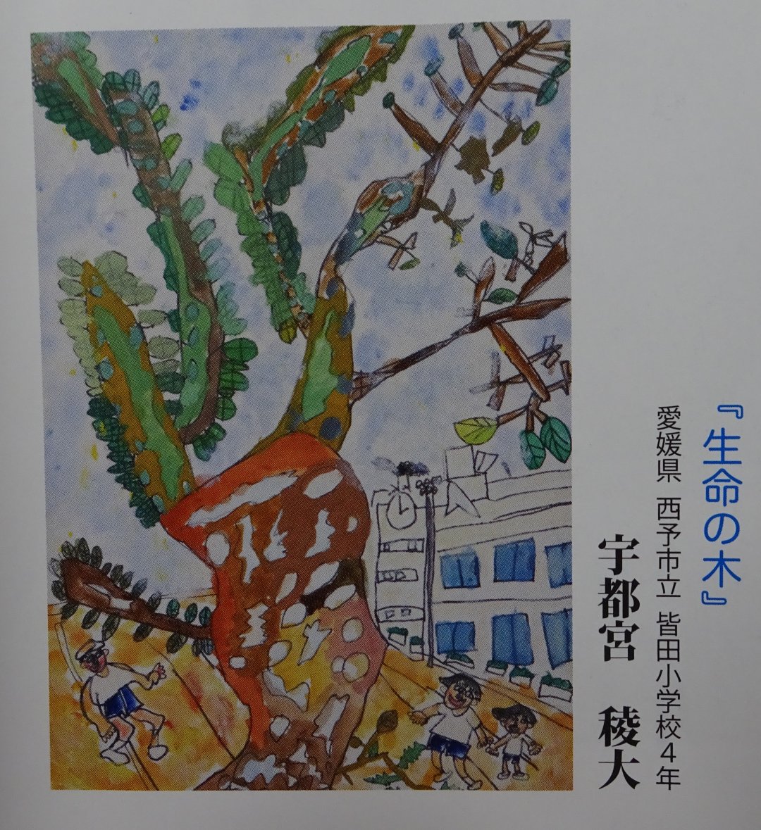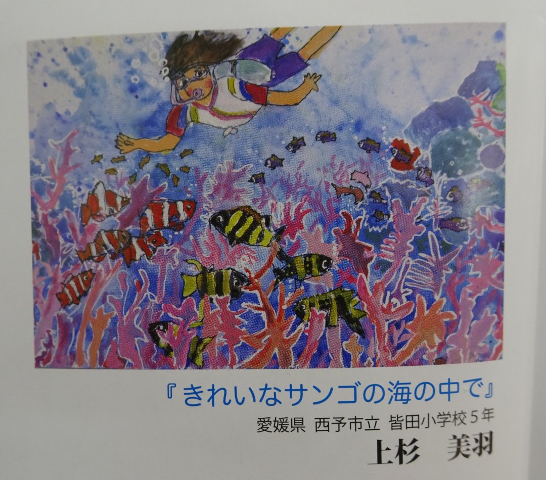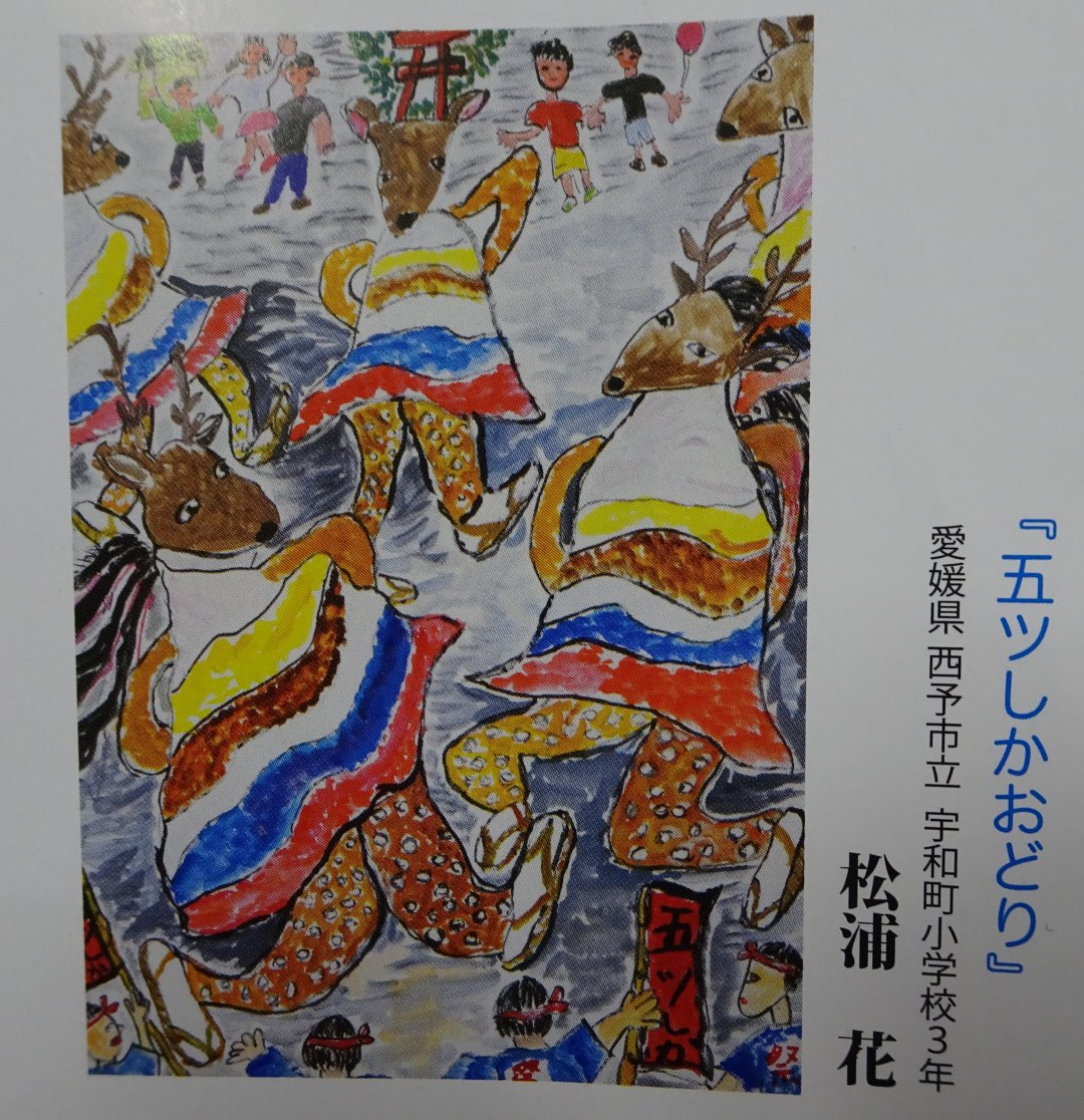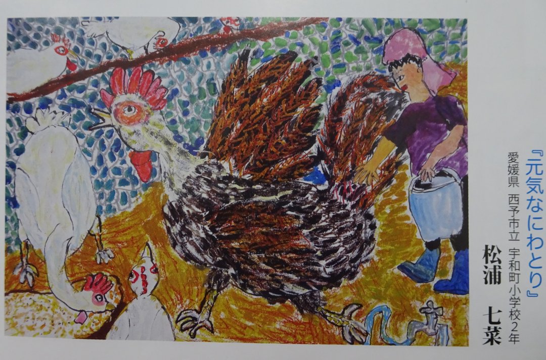 今回の博愛絵画展には、全国から2,032点の応募があり、そのうち愛媛県内からは185点(8小学校)の応募がありました。