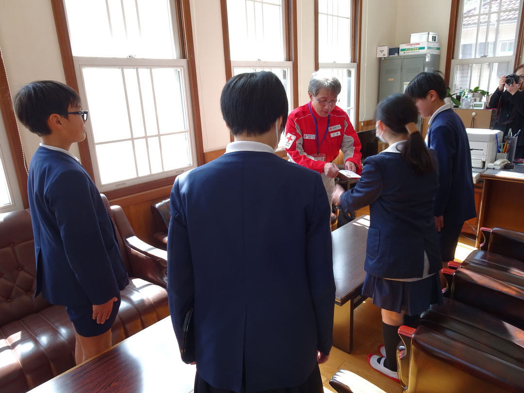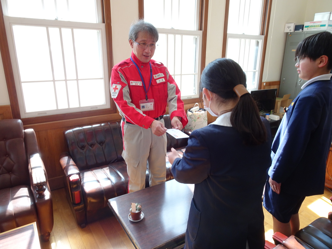 また、贈呈後は児童の代表者から「日赤は災害に備えて、普段はどのようなことをしているのですか」という内容の質問がありました。