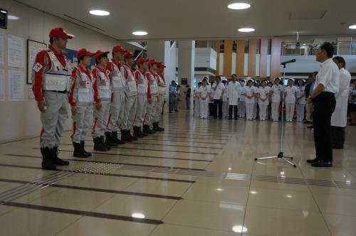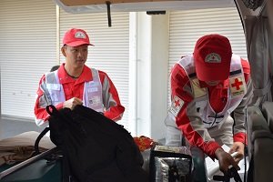 日赤福井県支部救護班 多くの職員らに見守られ出動!