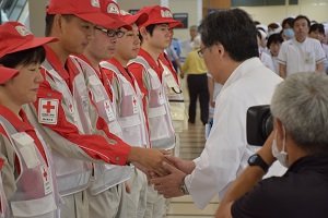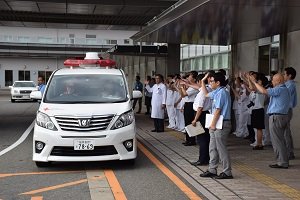 日赤福井県支部は、本社災害対策本部の支援要請を受け、7月27日、広島県呉市(安浦地区)へ救護班を派遣しました。多くの職員らが見守るなか、午前8時40分に出発しました。日赤福井県支部救護班第1班は、31日まで避難所での診療や巡回診療を行います。