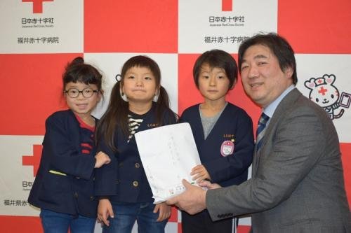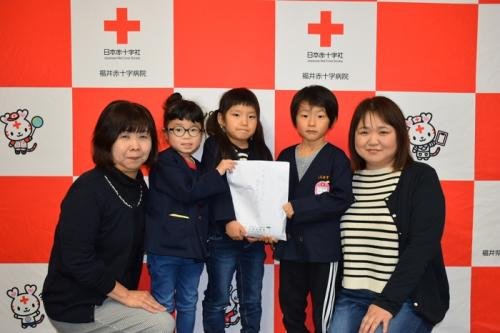 鯖江市の白蓮保育園(石田多美枝園長)は11月27日、日赤福井県支部を訪れ「海外たすけあい救援金」を届けました。