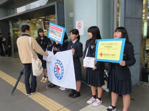 足羽高校JRC部が「NHK海外たすけあい」の街頭募金を実施!