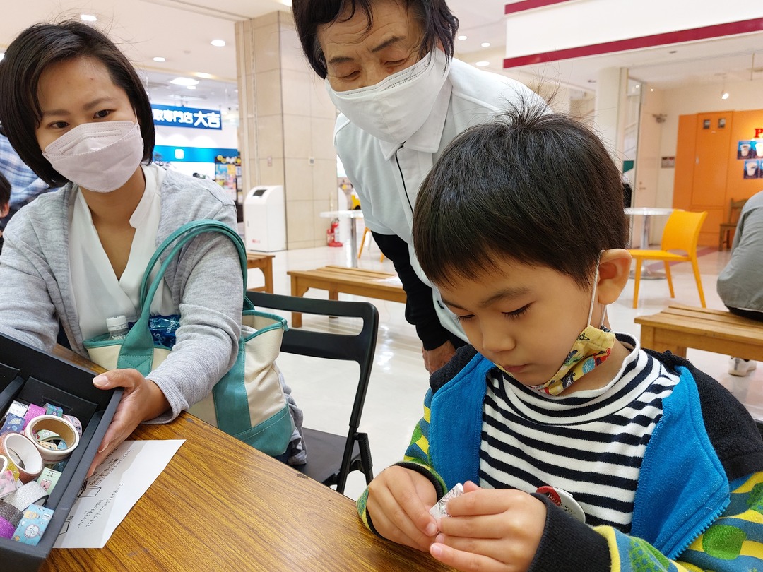 また、防災グッズの作製ブースには、子どもからお年寄りまでたくさんの人が訪れました。自分で作った災害時用の笛からうまく音が出て嬉しそうにしている人や新聞紙で作ったスリッパを一生懸命デコレーションしている人など、多くの人が防災グッズの作製を楽しんでいました。