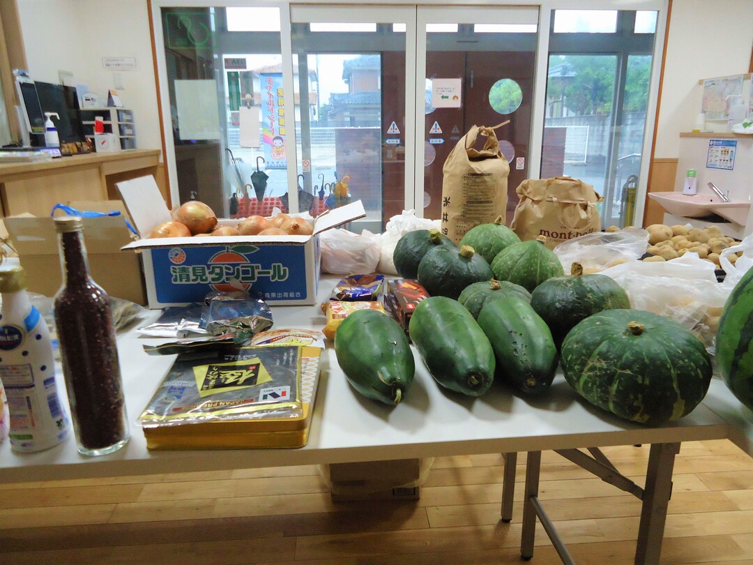 フードドライブとは、家庭で余っている食材を持ち寄り、困っている人に届ける取り組みです。市内9分団から成る同奉仕団は、昨年度からこの取り組みを行っており、今回は団員らが集めた米や野菜、スイカ、缶詰、菓子など約50品目を贈りました。