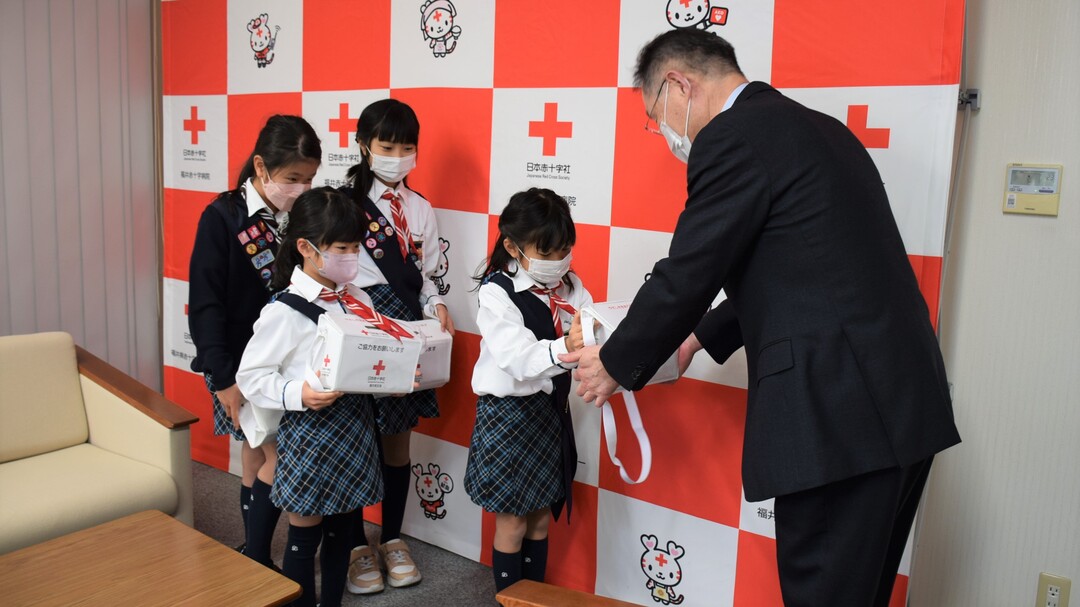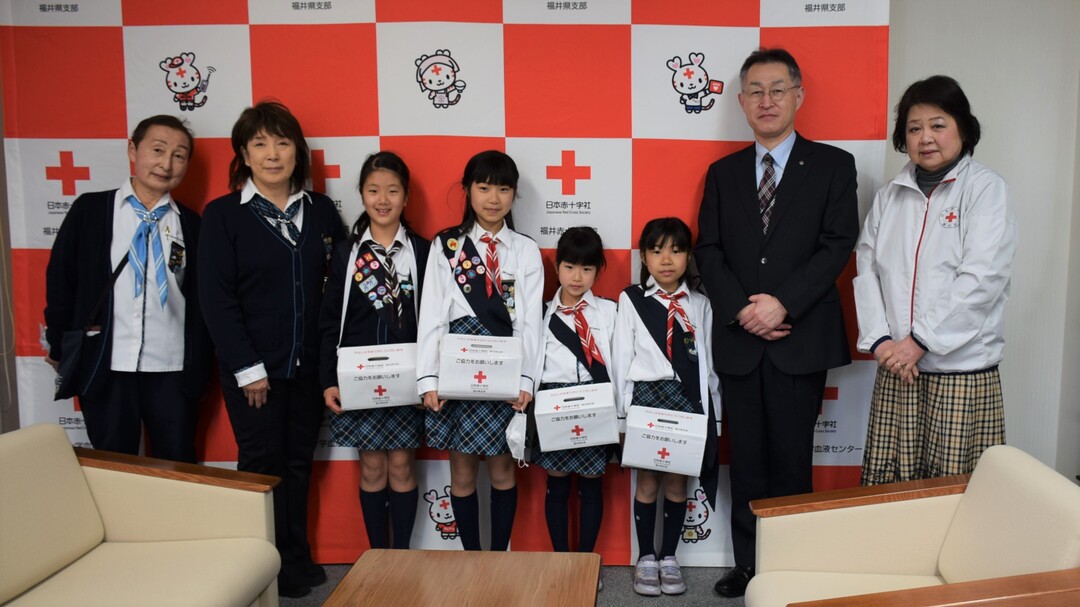 福井市赤十字奉仕団&ガールスカウト福井県第1団から3月27日、「2023年トルコ・シリア地震救援金」として、45,595円を届けていただきました。