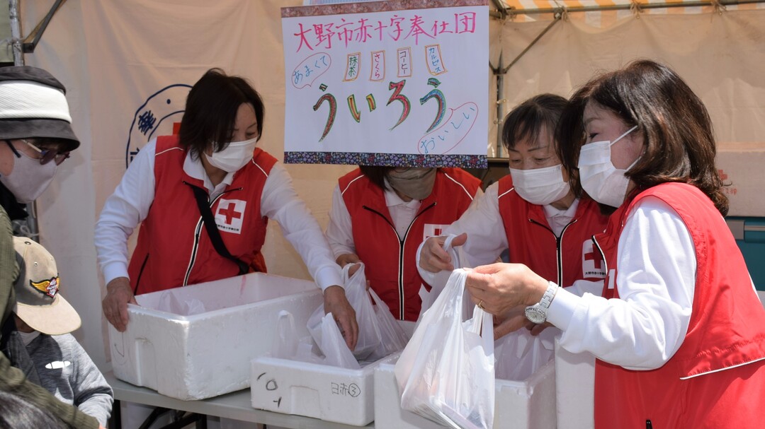 昨年度と同様に、救援物資を運ぶトラックの展示やハイゼックスを使った炊き出しの無料配布、赤十字の活動を紹介するパネル展、防災グッズの作製ブース設置など様々なイベントを実施。炊き出しの無料配布では今年も行列ができ、災害時の食事を多くの人に体験してもらうことができました。