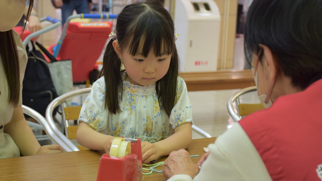 奉仕団員に教えてもらいながら一生懸命作製していました
