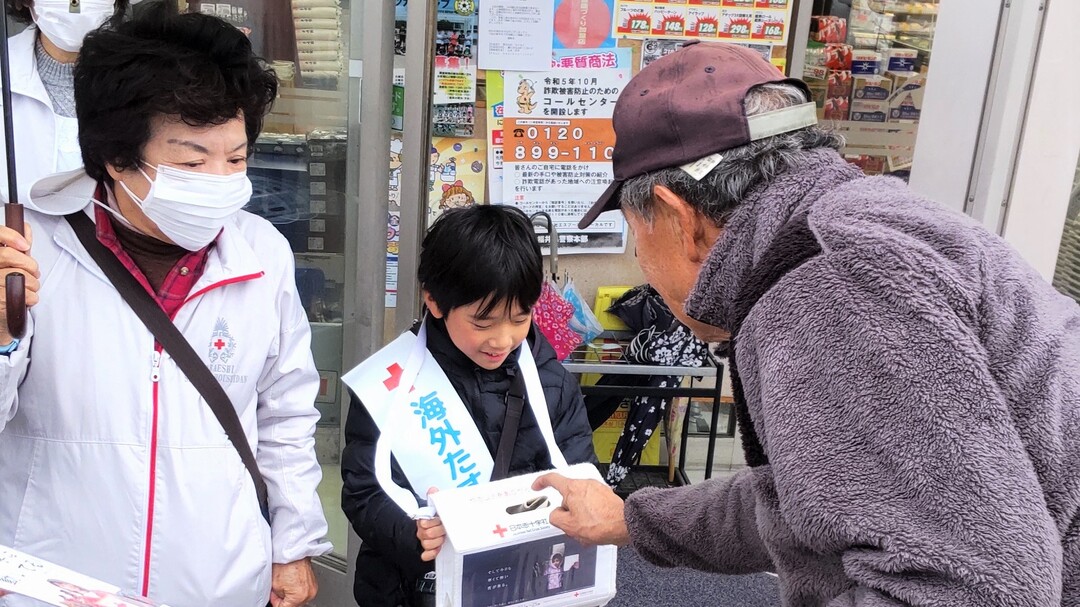 当県では、今年も各地で街頭キャンペーンを実施。地域赤十字奉仕団やJRC加盟校の児童生徒らが、商業施設や市役所などで募金を呼びかけ、買い物客や親子連れ、遊びに来ていた高校生などから多くの善意が寄せられました。
