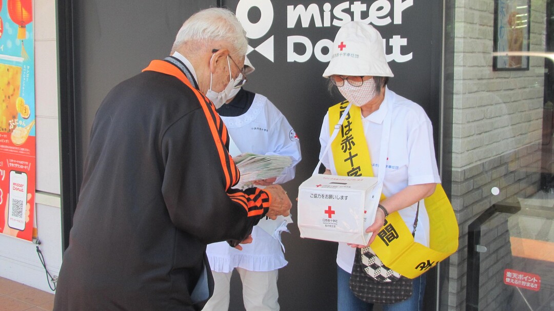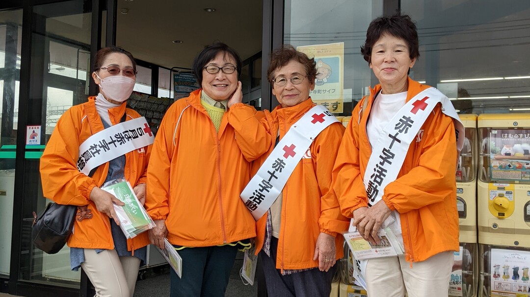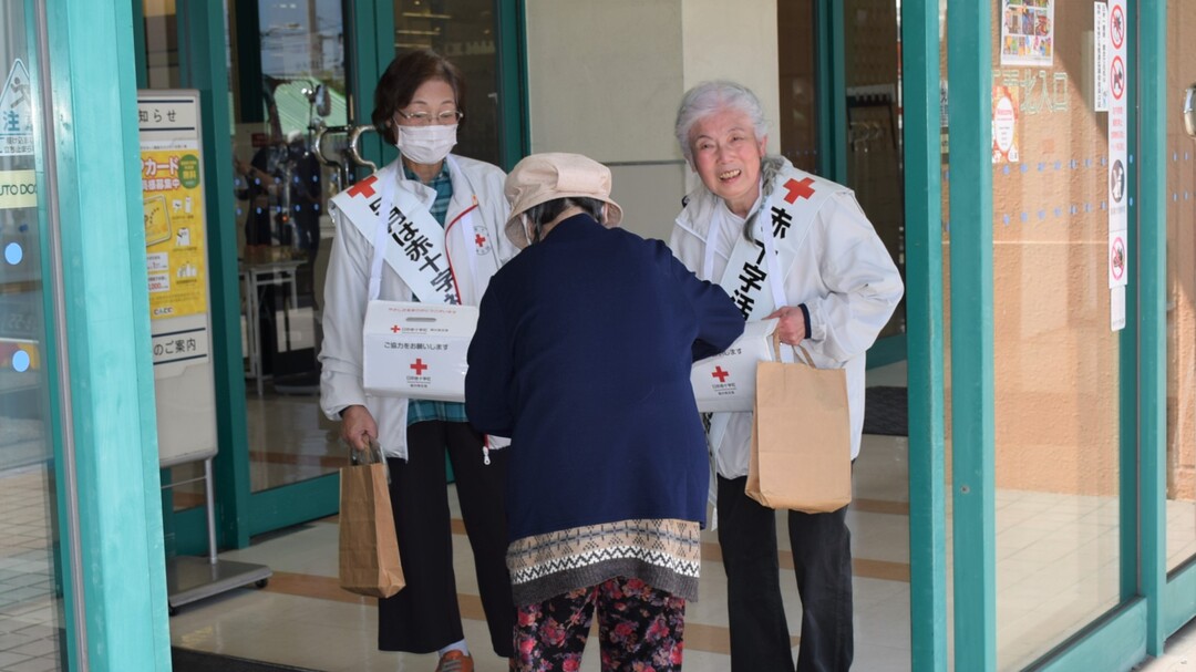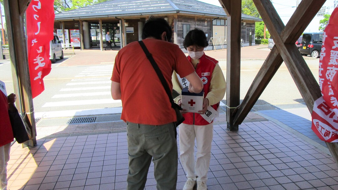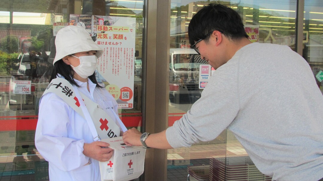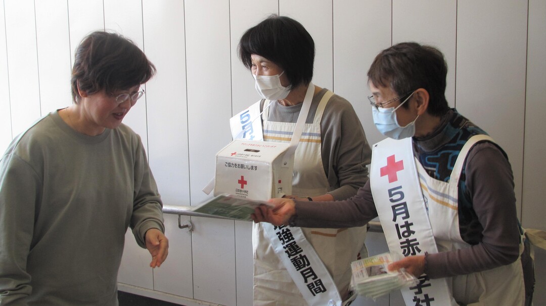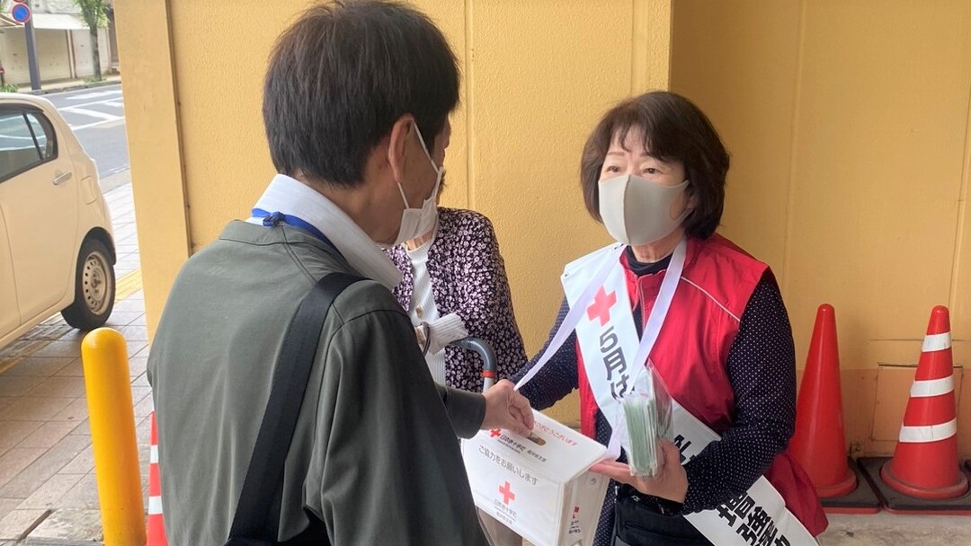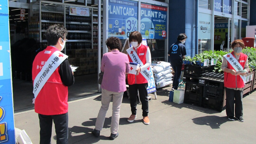 今年も県内各地の商業施設等で、奉仕団員が赤十字の広報チラシやマスクを手渡しながら赤十字の活動への理解と協力を呼びかけました。