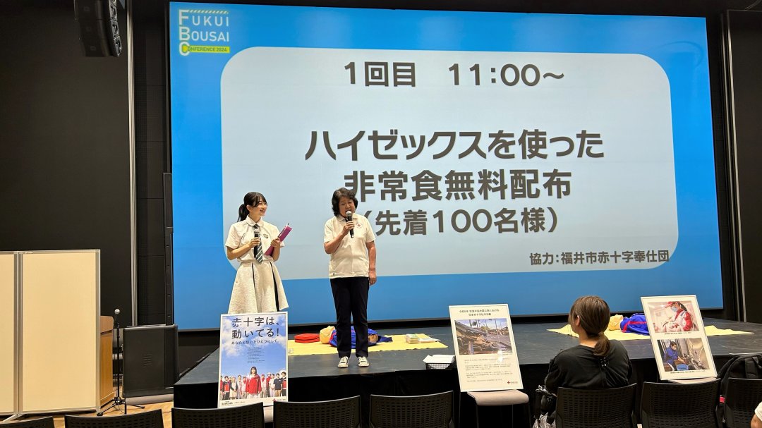 日赤福井県支部は6月22日、福井市の複合施設「TRETAS(トレタス)」の GREEN HALL で開催された FUKUI BOUSAI CONFERENCE 2024 に参加しました。