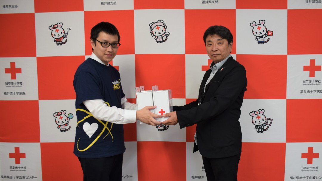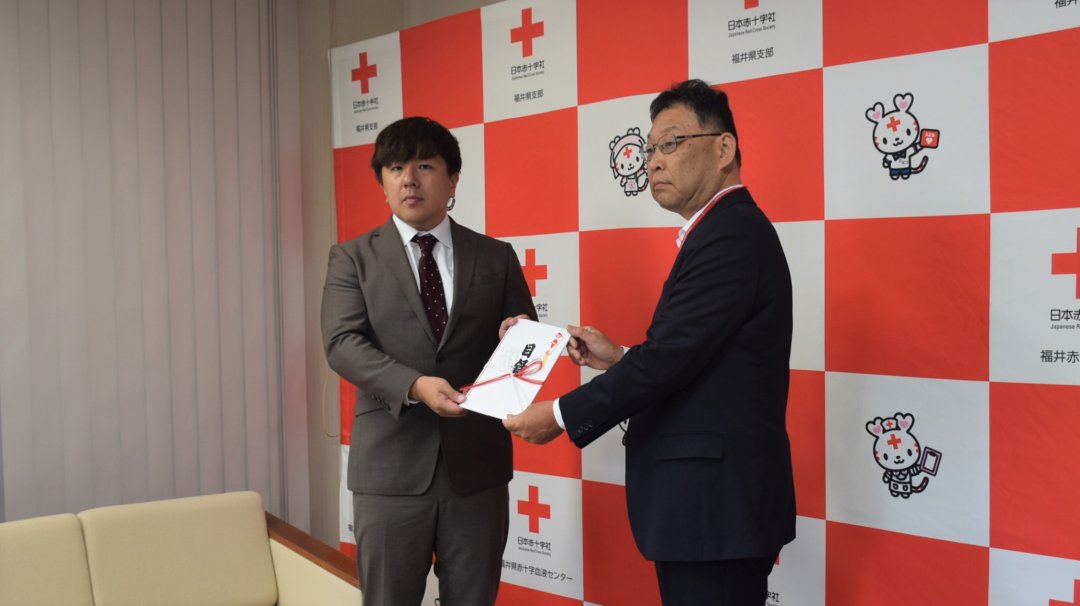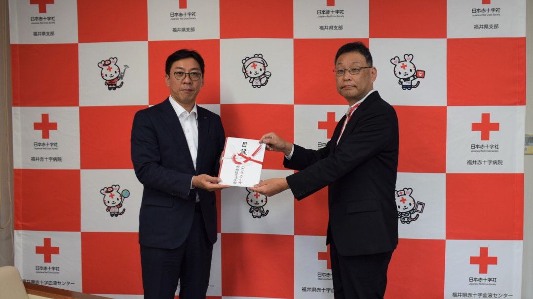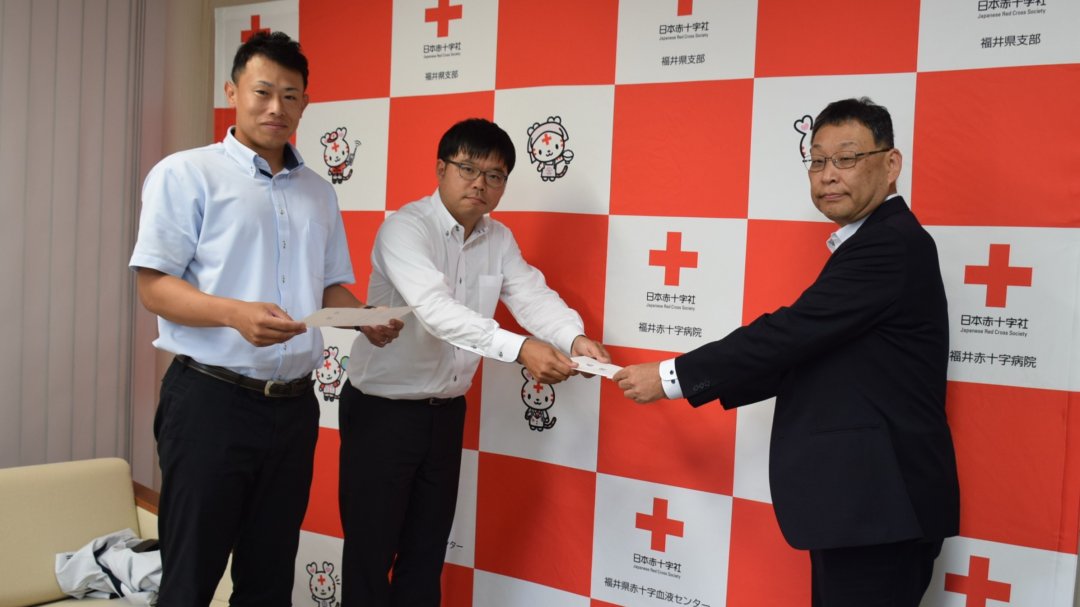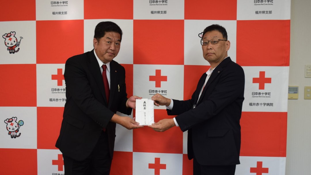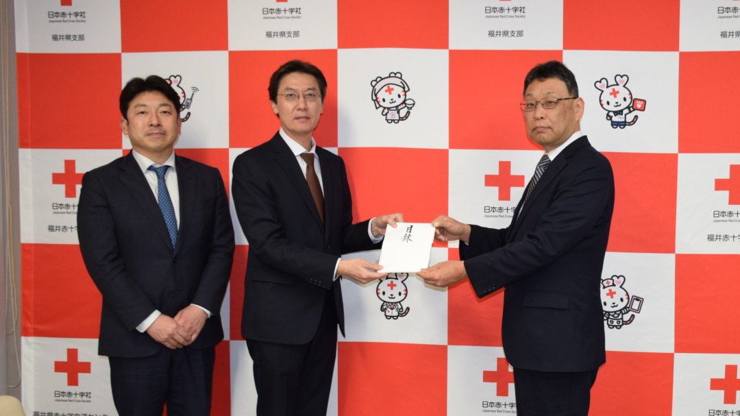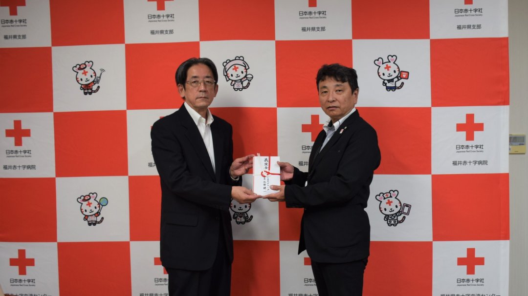 福井県内の被災者支援のため、4月4日に2,500,000円を届けていただきました。