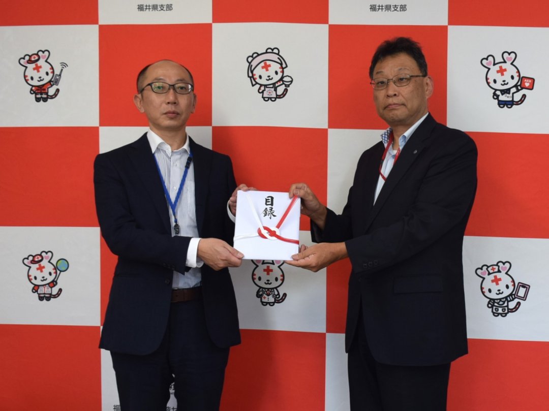 10月9日、会社としての30万円と社内募金で従業員の方々から寄せられた38,720円を届けていただきました。