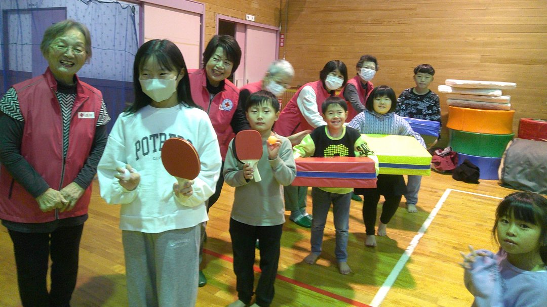 この日、団員から卓球のおもちゃなどが贈られ、子どもたちは早速それらを使って楽しそうに遊んでいました。