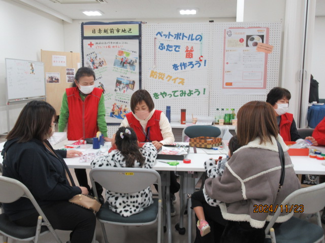 越前市赤十字奉仕団(永田和子委員長)は11月23日、「市民プラザたけふ」のオープン5周年記念交流祭に参加しました。