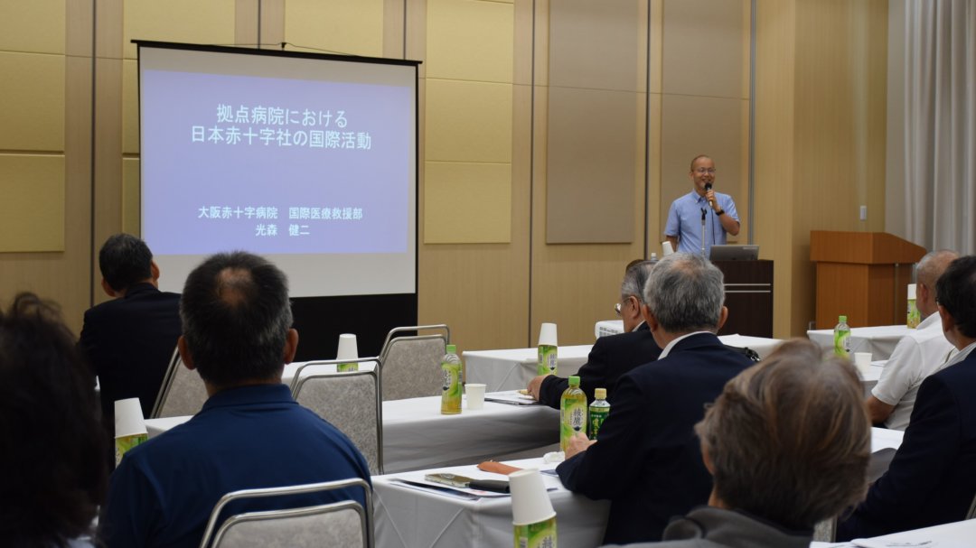 また、総会に引き続き行われた講演会では、大阪赤十字病院の光森健二国際医療救援部長兼泌尿器科部長に「拠点病院における日本赤十字社の国際活動」と題してご講演をいただきました。