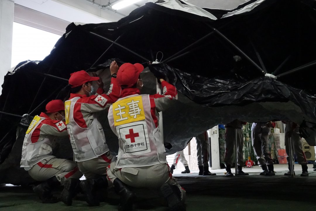 訓練に参加した職員は、「いつ起こるか分からない災害に対して、いかなる状況下でも冷静な判断が求められる。平時から赤十字の使命感を持って災害に備えたい」と語りました。
