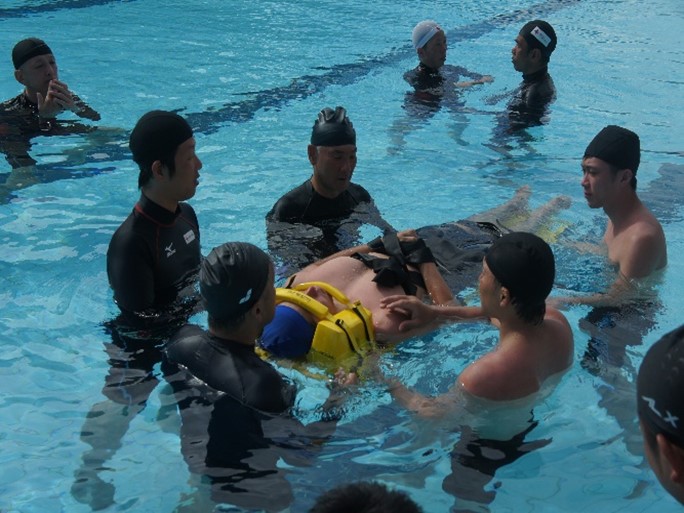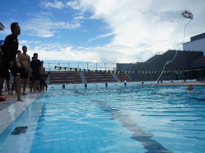 水上安全法救助員Ⅰ養成講習は、水を活用した健康増進と水の事故防止、水難救助の方法を学ぶことができます。今回、新型コロナウイルスの影響により4年ぶりの開催となり、感染対策と熱中症対策を講じて実施しました。