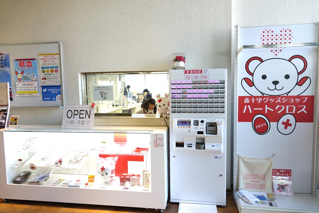 福岡県支部では、正面玄関入ってすぐところで日赤グッズを販売しています。